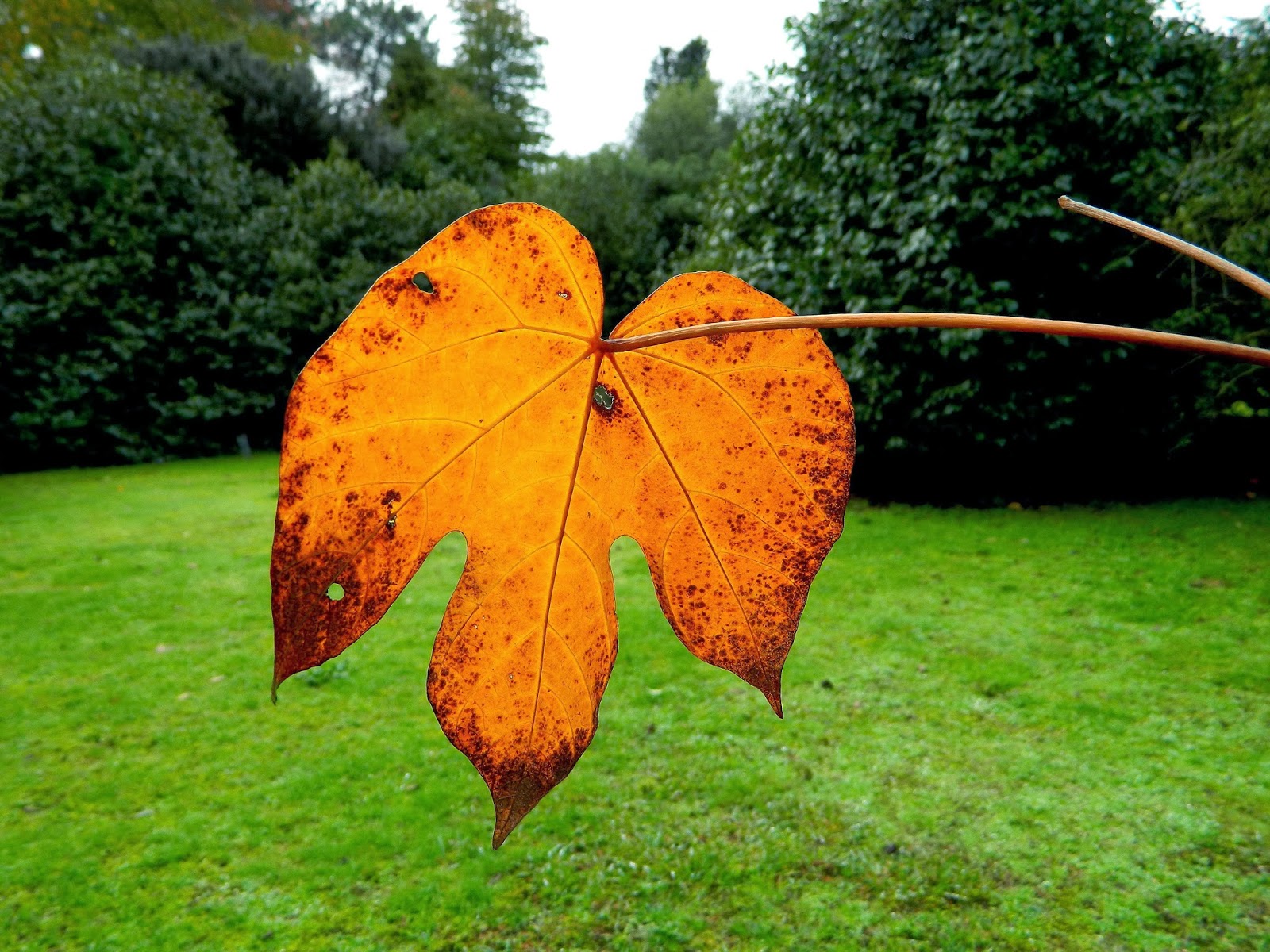 | La hoja otoñal de la Firmiana Simplex, un árbol ornamental nativo de Asia. |