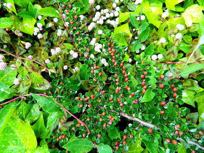 | Nos encantan los pétalos que se caen y siguen decorando el suelo verde. |