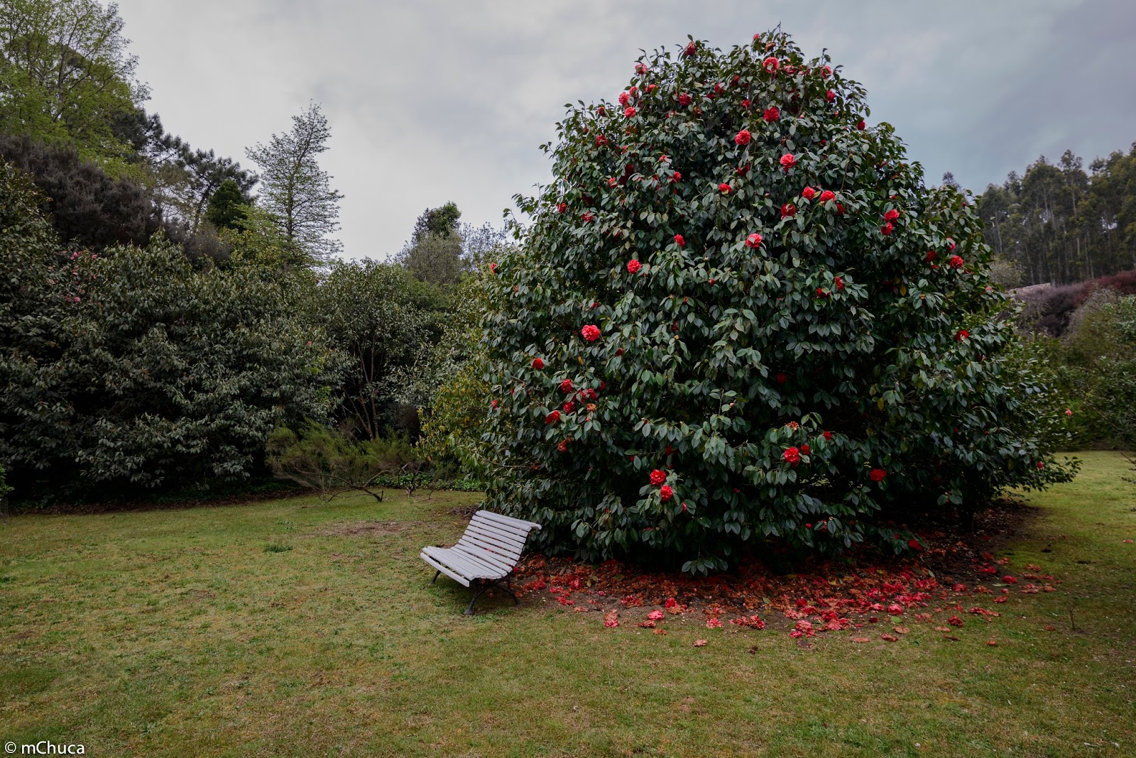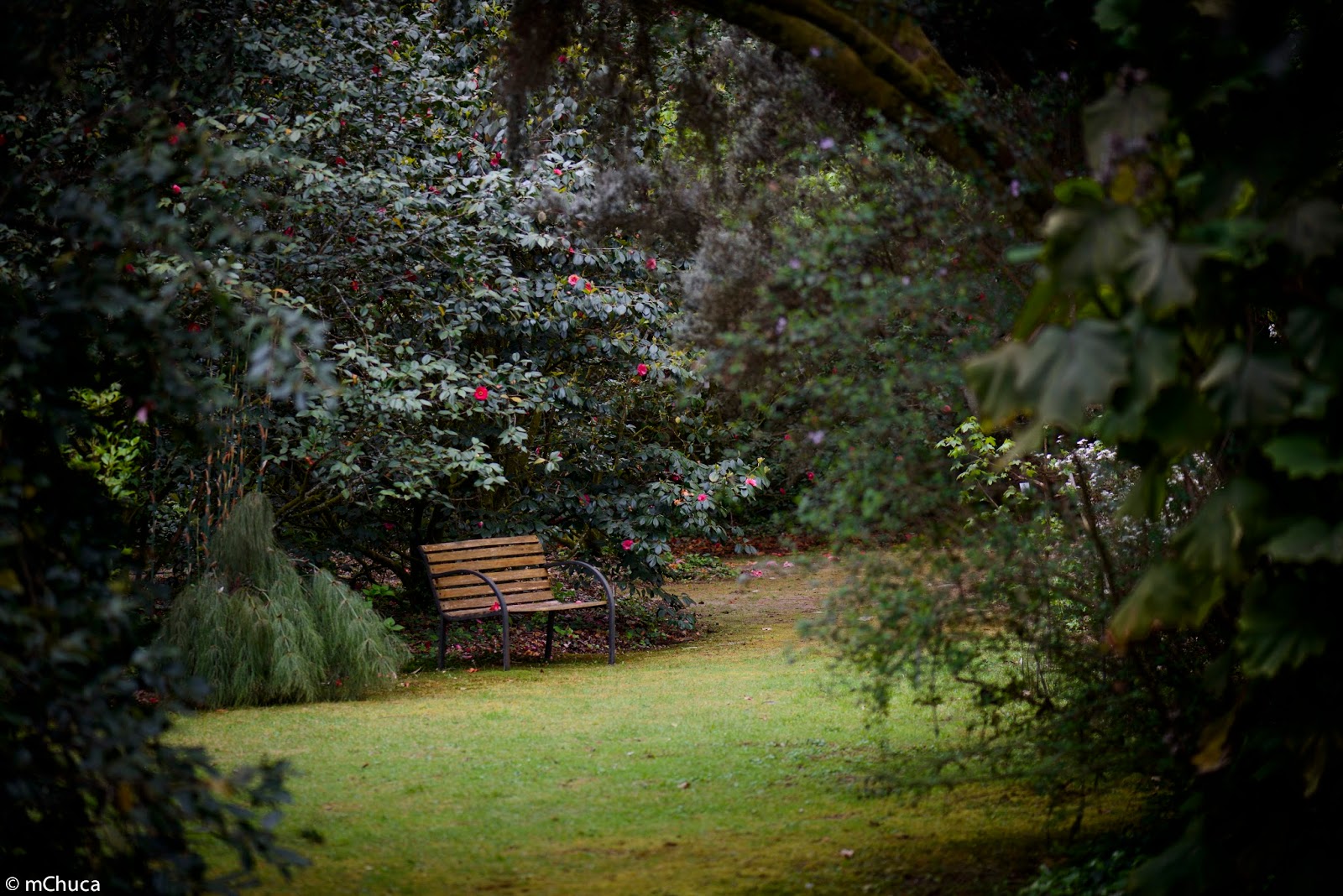 Banco al lado de la camelia. Bench next to the camellia tree. (Photo by Manuel Pérez Ferro) |