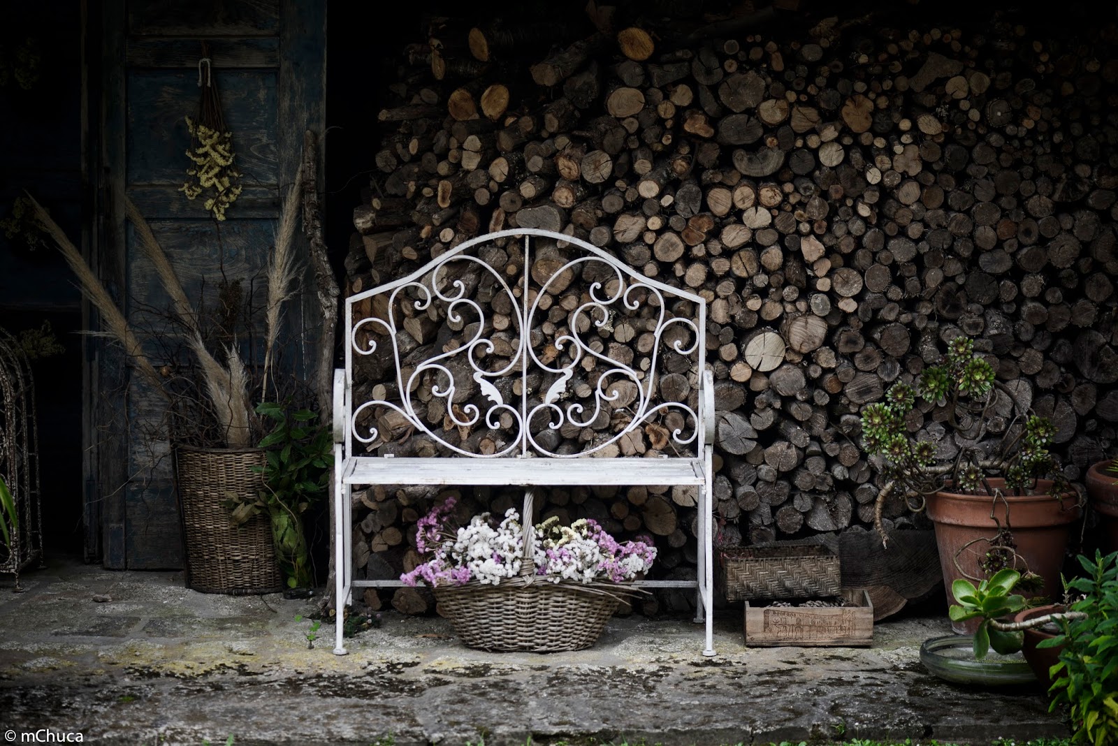 El banco en la leñera. The bench in the woodshed. |